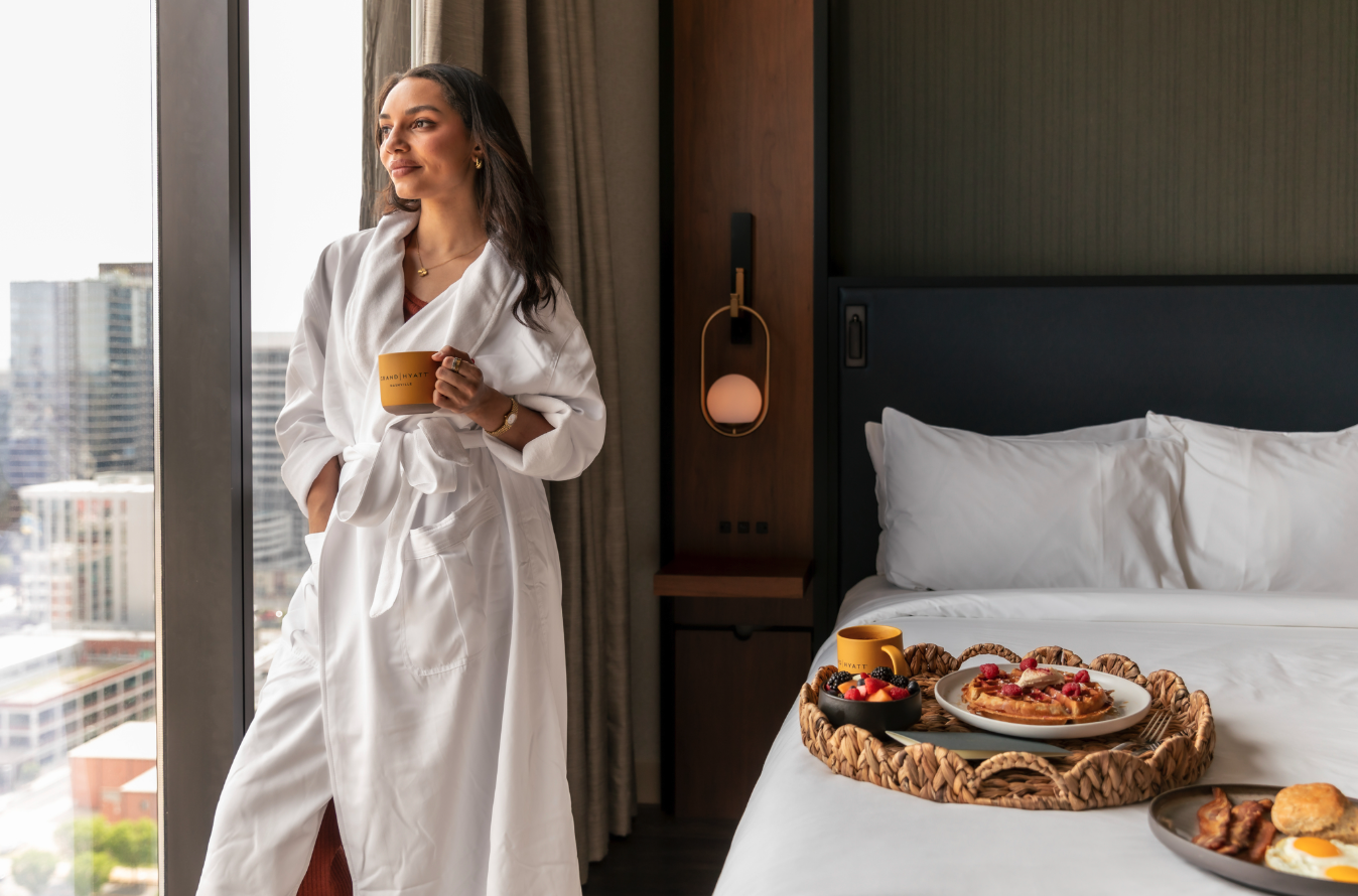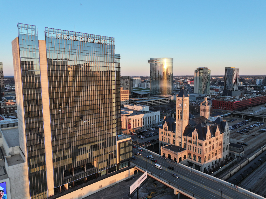 Voted the "#1 Best New Hotel in America" in 2020 by USA Today's readers, the 25-story Grand Hyatt Nashville at Nashville Yards opened to great acclaim in October 2020. Within easy walking distance of Bridgestone Arena, Nissan Stadium, and all of downtown Nashville, the urban retreat features 591 guest rooms and 80,000 SF of conference space, plus a world-class spa, gym and pool, seven signature restaurants, and the highest outdoor rooftop bar in Music City.